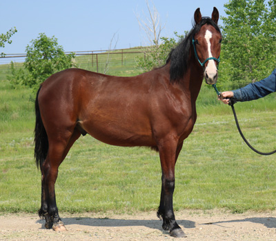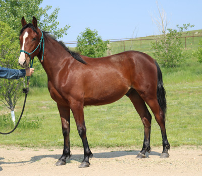 22400334 - is a nice bay gelding with an off hind coronet and a blaze.
